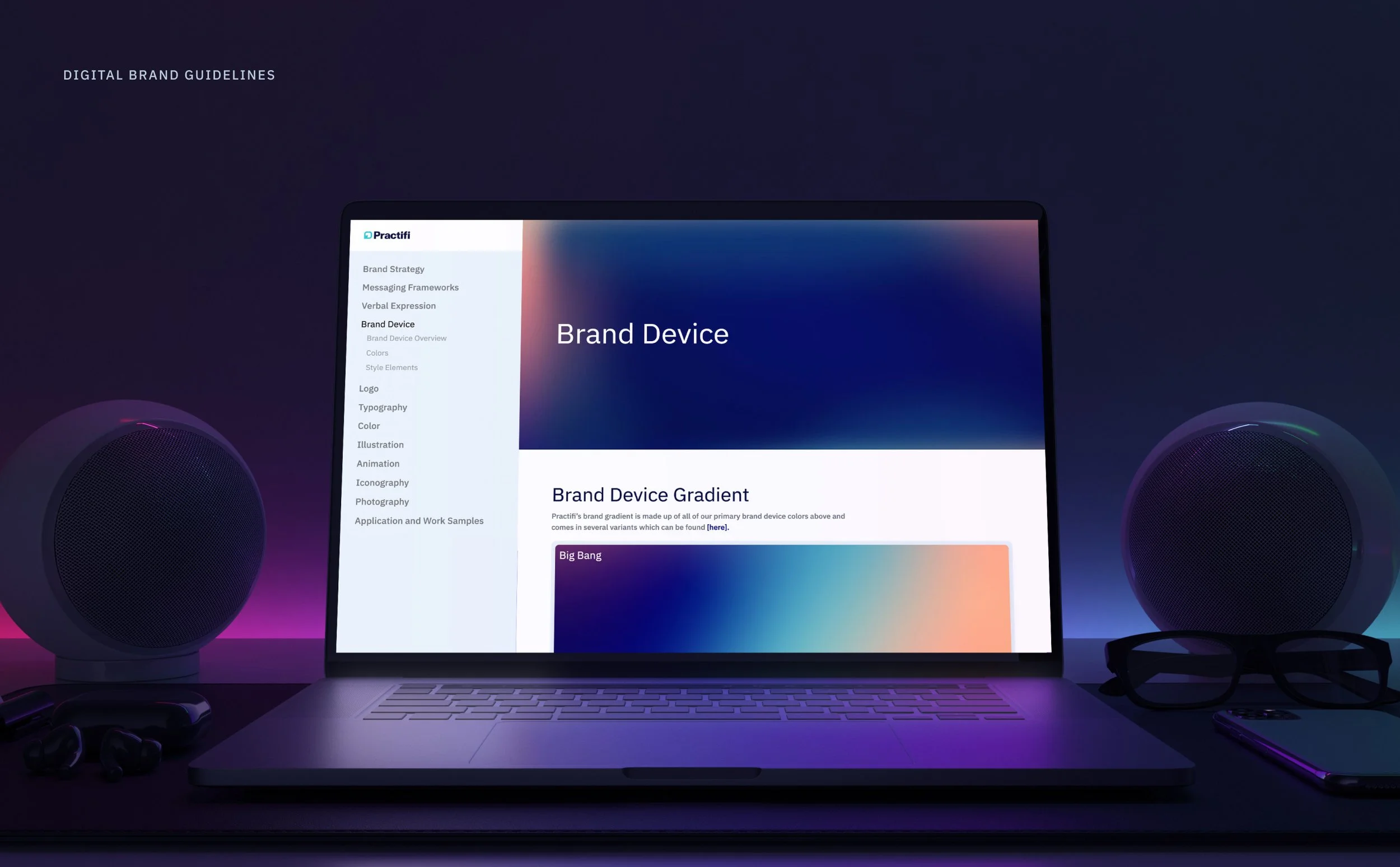 Coming off the heels of a successful Series B funding round, Practifi approached us to help align its growing brand around a clear vision for the future. To bolster its credibility with advisory institutions and large enterprise firms with a wealth management arm, Practifi needed more sophisticated messaging tailored to its key audiences. In addition to a new verbal identity, Practifi partnered with us to refine its visual identity and provide updated brand guidelines to ensure cohesive activation of the new brand in the market.